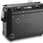 GIVI garantisce per le proprie valigie un grado di tenuta acqua corrispondente a una pioggia forte, in particolare le valigie vengono testate con un apposito macchinario che simula una pioggia con una portata maggiore di 20 lt./ min.